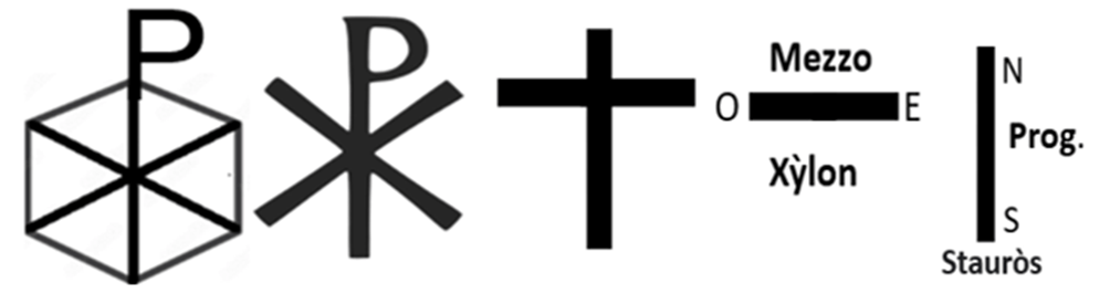 La loro unione, nel Nuovo Testamento, rappresenta la croce, compimento simbolico del progetto iniziato nella preesistenza. Stauros indica il palo della Samec, Xylon l’angolo della Pe, e la loro unione nella croce segna il compimento del ciclo.